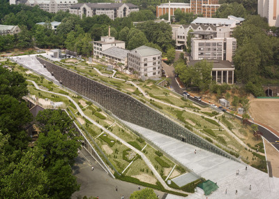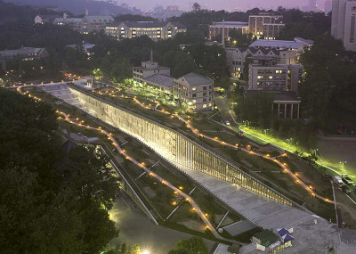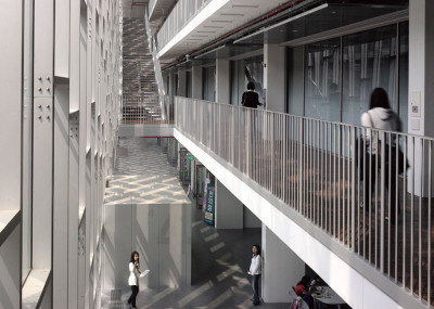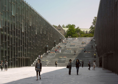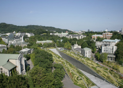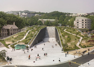 طراحی ساختمان جدید این دانشگاه به منظور تحصیل 20 هزار دانشجو، در سال 2004 به مسابقه گذاشته شد که درطی آن طرح پیشنهادی "دومینیک پرولت Dominique Perrault" معمار صاحب نام فرانسوی به عنوان طرح برنده اعلام گردید. عملیات احداث این ساختمان درسال 2008 به اتمام رسیده و از آن بهره برداری گردید. طرح خلاقانه ی معمار ضمن معرفی دیدگاهی متفاوت به فضاهای آموزشی، نهایت بهره را از موقعیت و شیب زمین برده و ساختمان را در سطح زیرین فضای سبز وسیع پنهان می کند. در این پارک شهری که بر روی بام بخش اصلی ساختمان دانشگاه قرار دارد مسیرهای تردد پیاده با شیبی ملایم طراحی شده اند. بدین ترتیب علاوه بر دعوت از عموم برای حضور در فضای دانشگاه، این پارک به محلی برای اوقات فراغت دانشجویان تبدیل شده و در عین حال دید به فضاهای آموزشی داخلی ساختمان را نیز ممکن می سازد.