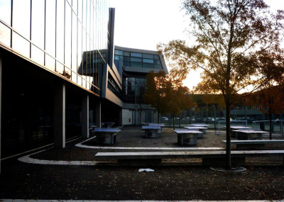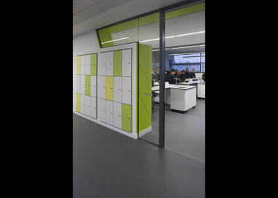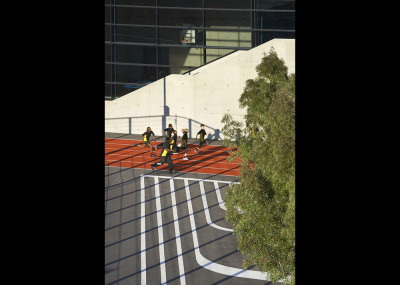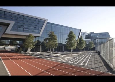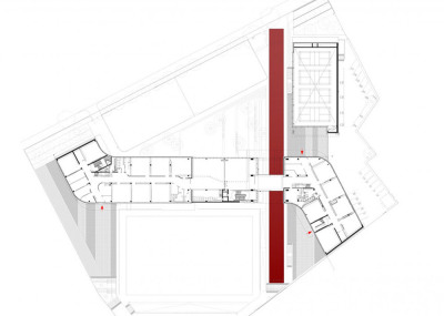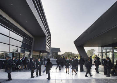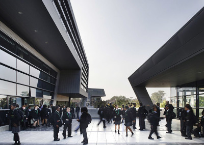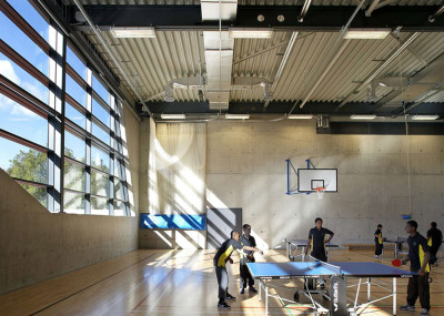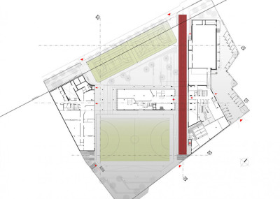 این ساختمان که دارای دو ورودی در تراز همکف می باشد، جداره هایی شفاف و دعوت کننده داشته و بالکن های عریضی در سطوح مختلف برای گذران اوقات فراغت میان ساعات درس دانش آموزان طراحی شده است. جهت گیری و فرم ساختمان به نحوی است که تمامی جبهه های آن دارای اهمیت بوده و به خوبی از دو خیابان اصلی در اطراف سایت قابل رویت و دسترسی می باشد. در داخل ساختمان علاوه بر کلاس های آموزشی، سالن هایی چند منظوره تعبیه شده است که با اندک تغییری می توانند تغییر کاربری داده و به سالن پذیرایی، سالن ورزش، کلاس درس جمعی و سالن رقص تبدیل شوند. راهروهای عریض، بالکن ها و نشیمن های متعدد در فضاهای داخلی جهت شکل دهی به تعاملات دوستانه میان دانش آموزان مقاطع تحصیلی مختلف طراحی شده اند.
