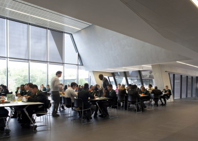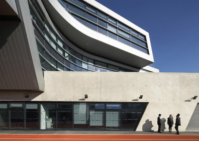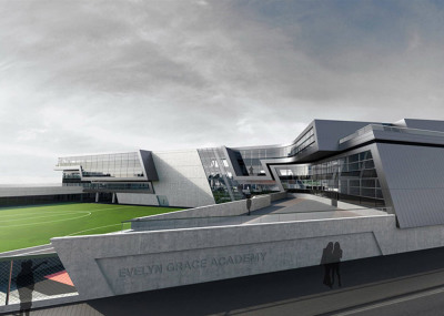 خطوط شکسته ، زوایای تند و دیواره هایی با شیب ملایم که شاخصه کارهای معاصر زاها حدید Zaha Hadid می باشند، در این ساختمان نیز به چشم می خورند. اما به راستی ساختار فضایی این آکادمی حیرات انگیز است. یکی از تئوری های نوین در خصوص مدارس آموزشی، ساختاری تحت عنوان "مدرسه در مدرسه" است. در این ساختار، چندین مدرسه آموزشی مستقل با هم ترکیب شده ، از فضاهای ورزشی و جمعی مشترک استفاده نموده و به عنوان یک آکادمی شناخته می شوند. در چنین ساختاری عموماً مدارس که هر یک به مقطع تحصیلی خاصی اختصاص دارند، با فاصله کمی از یکدیگر احداث می شوند تا ضمن استقلال هر مدرسه ، وحدتی میان آن ها برقرار شده و به عنوان یک کل قابل تشخیص باشند. آکادمی اولین گریس Evelyn Grace Academy نمونه ای از این ساختار است که در آن چهار دبستان مستقل تحت عنوان یک آکادمی فعالیت دارند. طرح زاها حدید Zaha Hadid برای این آکادمی به خوبی توانسته است به نیازها و چالش های برنامه پیشنهادی پاسخ دهد. بدین ترتیب ساختمان چهارمدرسه به نحوی با یکدیگر ترکیب و بنایی واحد را تشکیل داده اند که در عین وابستگی به یکدیگر ، هم از لحاظ فرم بیرونی و هم از لحاظ عملکرد درونی قابل تفکیک می باشند. این مجموعه که نخستین اثر در مقیاس شهری است که توسط زاها حدید Zaha Hadid درانگلستان طراحی و اجرا شده است، در محله بریکستون در جنوب لندن واقع شده است ، محله ای که اغلب ساکنین آن رنگین پوست بوده و بالاترین آمار جرم را در سرتاسر اروپا دارد. بدین ترتیب می توان گفت یکی از اهداف اصلی برای تامین هزینه و احداث این مجموعه ی شاخص و متفاوت، تغییر و اصلاح فرهنگی کودکان قشر کم در آمد این منطقه بوده است. به گفته والدین دانش آموزان، تحصیل در این مجموعه علاوه بر اشتیاق به تحصیل، در کودکان احساس غرور و شخصیتی به وجود آورده است که پیش از آن هرگز تجربه اش نکرده اند، ساختمان در میان انبوهی از مجتمع های مسکونی بنا شده و رویکردی ورزشی دارد. این رویکرد در ساختار پلان مجموعه قابل مشاهده می باشد. فضاهای ورزشی پیوندی تنگاتنگ با ساختمان داشته و مسیر دوصد متر با عبور از زیر پل ارتباطی ساختمان به فضای تردد و مسیر عبور روزانه دانش آموزان تبدیل شده است. همچنین قرارگرفتن مدارس بر روی یکدیگر امکان اختصاص فضای بیشتری را برای زمین های ورزشی روباز فراهم ساخته است. علاوه بر زمین های روبازی که توسط ساختمان احاطه شده اند، سالن ورزشی سرپوشیده ای نیز برای ورزش های سالنی درنظر گرفته شده است که هرچند مستقل از حجم اصلی به نظر می رسد اما در تراز زیرزمینی با سایر فضاهای آکادمی ارتباط دارد.